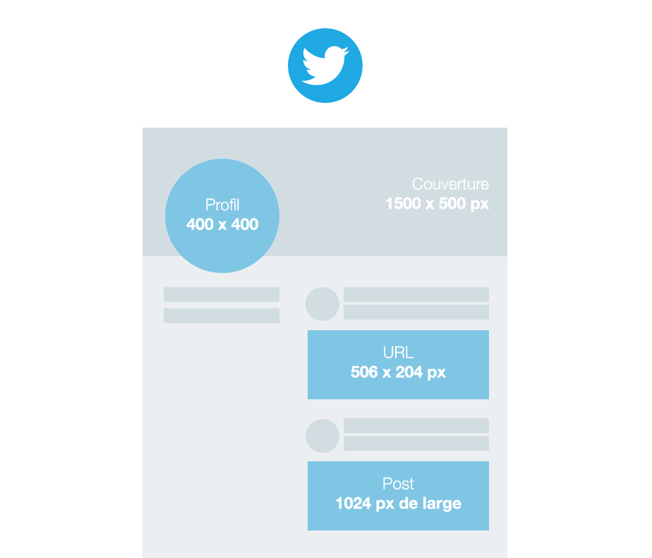 C’est au tour du petit oiseau bleu. Comme vous le savez, le texte sur Twitter est très limité (140 caractères seulement), c’est donc le moment de tout miser sur le visuel ! On ne vous apprend rien si l’on vous dit qu’une image vaut mille mots. C’est le moment de prouver le fameux dicton. Comme sur Facebook, sur Twitter, vous pouvez partager des liens avec une image en aperçu ou encore poster des photos seules. Voici les dimensions pour optimiser tous vos tweets :